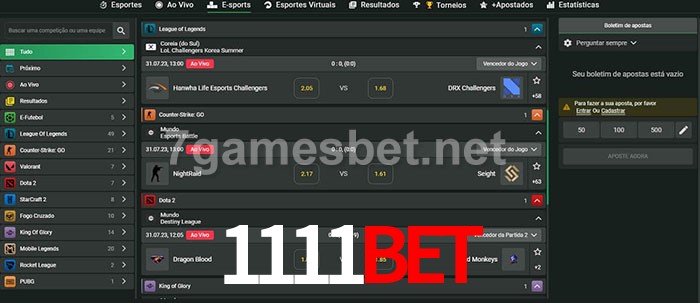 O 1111Bet oferece uma grande seleção de opções de apostas em e-sports com probabilidades competitivas